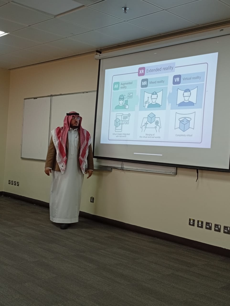 The discussion also covered the advantages and challenges of implementing AR in classrooms, along with a review of recent technological advancements. Mr. Almaimouni concluded by considering future directions for the integration of AR into mathematics education, suggesting that it could reshape teaching and learning in profound ways.