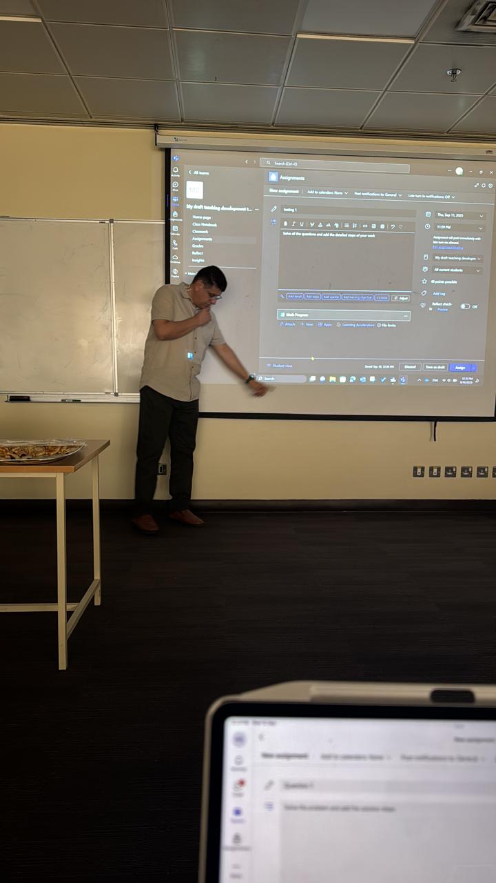 On September 9, 2025, Mr. Naji Ibrahim conducted an informative seminar focused on enhancing student assessment in mathematics through Microsoft Teams. He introduced a tool named Math Progress, designed to help educators effectively monitor student understanding and engagement with their studies.